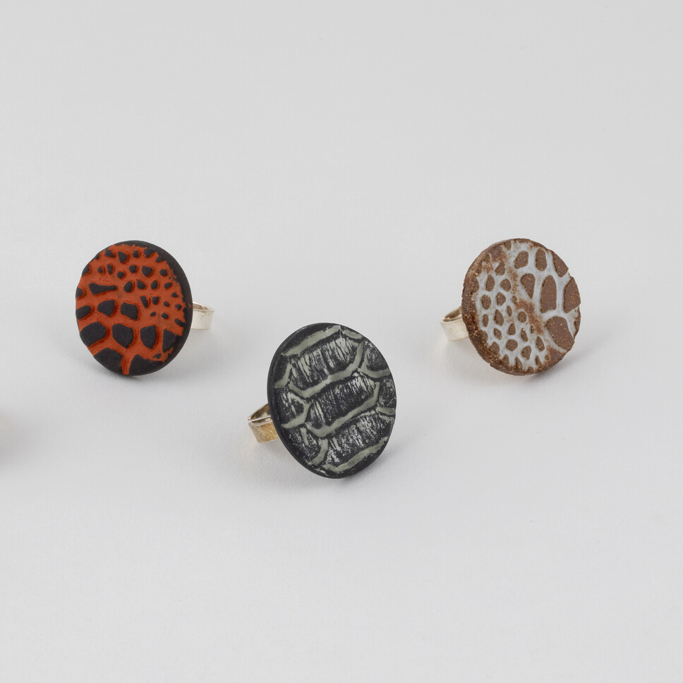 Anillo redondo de diseño único. Cerámica modelada a mano. Esta pieza parece tallada por la naturaleza y el paso de los años como el paisaje desértico de los Monegros. Anillo de plata regulable.