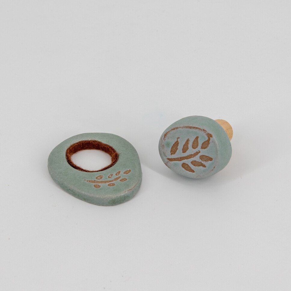 Barro de alta temperatura y esmaltado en barniz satinado con la técnica de reserva que le da un toque muy suave.